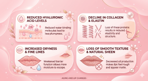 Environmental factors in Singapore, such as UV exposure, heat and air-conditioning, can further dehydrate the lips. This results in lips that appear thinner, less defined and more wrinkled — even without significant volume loss.