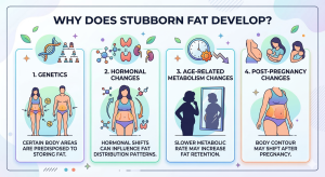 Unlike general weight gain, localised fat tends to be resistant to lifestyle changes and may affect body contour rather than overall weight.